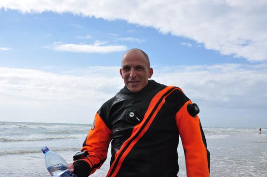 Achim nach dem Rekordtauchgang durch den Ärmelkanal