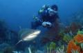 Das Tauchen unterscheidet sich deutlich von den eher flachen Tauchgängen in Port Elizabeth. Das Wasser ist zwar mit ca. 23 °C deutlich wärmer, allerdings liegen die Riffe wesentlich tiefer (ca. 33–40 Meter). Am ersten Tag haben wir mehr mit dem Blick auf den Computer zu tun, als die Tauchgänge zu genießen. Die Dekozeiten sind enorm, bereits beim zweiten Tauchgang haben wir deutlich über 15 Minuten auf dem Wecker. Nach einem Gespräch mit Roland entschließen wir uns, ab sofort mit Nitrox zu tauchen, zusätzlich vermeiden wir es, direkt am Riff entlang zu tauchen, wie es in anderen Regionen üblich ist. Hier geht es vorrangig um Großfisch- Begegnungen und wenn man nicht gerade die Sandtigerhaie in den Höhlen besucht, gibt es so gut wie keinen Grund, dem Riff komplett in seine Tiefen zu folgen.Rolands Spezialität sind die Tigerhai-Tauchgänge, bei denen die Haie mit einem "Bait" angeködert werden. Hierzu wird eine Waschmaschinen- Trommel verwendet, in der sich Sardinen und Fischreste befinden. Gleich am Anfang patrouilliert ein gewaltiger, vier Meter langer Tigerhai am Bait. Er zeigt allerdings kein intensiveres Interesse und verschwindet nach wenigen Minuten wieder in den Weiten des Meeres. Stattdessen erscheinen die Sambesis und Schwarzspitzenhochseehaie auf der Bildfläche. Sambesis sind eine örtliche Unterart der Bullenhaie, denen so ziemlich die meisten Unfälle mit Menschen zugeschrieben werden. Obwohl die Bullenhaie als gefährlicher gelten, sorgen heute die Hochseehaie durch ihren etwas nervösen Auftritt für mehr Skepsis. Dennoch haben wir zu keinem Zeitpunkt das Gefühl, in einer unkontrollierbaren Situation zu sein und schließlich ist dies ja genau was wir gesucht haben – Haie satt!
