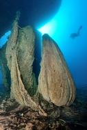 Am nächsten Morgen wird eine weitere Leine am Bug befestigt. Damit können wir auch bei starker Strömung one-way vom Bug zum Heck tauchen. Doch wir haben Glück, es herrscht nur eine schwache Strömung und relativ gute Sicht. Zwei Dinge erkennt Rene sofort: Das Schiff ist alt, wie man an den genieteten Stahlplatten erkennen kann. Es liegt jedoch noch nicht so lange im Wasser wie die "Cape Clear", denn der Korallenbewuchs ist weniger dicht. Der Bug ist stark zerstört – ob eine Kollision die Ursache war oder der Einschlag auf dem Meeresgrund?