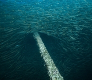 Plötzlich verdunkelt sich das Wrack. Der Blick geht nach oben und endet an einer Wand von Streifenfüsilieren. Pulsierend wie ein einziger zusammenhängender Organismus ziehen sie nach links und nach rechts, nach oben und nach unten, als ob sie durch einen zentralen Befehl gesteuert würden. Sind es zehntausend Fische, zwanzigtausend? Ab und zu stoßen jagende Makrelen durch den Schwarm, rasenden Torpedos gleich, während auf dem Schiffsdeck Rotfeuerfische auf Beute lauern. Ob Muränen, Anemonenfische oder Torpedorochen: Jeder Meter, den die Taucher unter Wasser zurücklegen, bringt auf der Turkia eine neue Entdeckung.