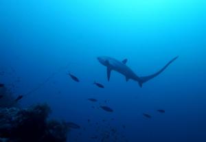 Gerade in den letzten Jahren hat die Anzahl an Fuchshaien deutlich zugenommen. Die scheue Haiart mit der charakteristischen Schwanzflosse, die fast die Hälfte der Körperlänge ausmachen kann, hält sich bevorzugt auf der West- und Ostseite auf, weniger im Norden des Riffes. Es gibt neben Malapascua (Philippinen) und den Brother Islands auf der Welt kaum Plätze, wo man diese Räuber recht sicher sehen kann – auch dieser Punkt lässt Daedalus zu einem Tauchspot der Extraklasse werden. Im Gegensatz zu den Hammerhaien halten die Fuchshaie sich auch meistens dicht am Riff auf, was zwar ihr Auffinden erleichtert, nicht unbedingt jedoch den Tauchgang. Auch sind Fuchshaie selten in flacheren Gewässern zu finden; wer sie sieht, bewegt sich meistens schon an der Grenze dessen, was Verbände für Sporttaucher noch als tolerierbar empfinden.