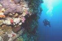 In 15 Meter Tiefe ist mit der Herrlichkeit dann weitestgehend Schluss, auch wenn sich vereinzelte Exemplare in noch tieferen Bereichen angesiedelt haben. Mit dem Riff linke Schulter taucht man anschließend weiter in Richtung des Safaribootes. Der schönste Bereich liegt dabei zwischen zehn und 25 Meter, es ist wie ein gemütlicher Spaziergang an einer vom Leben umtosten Riffwand entlang. Hornhechte, Barsche und Wimpelfische flankieren den Weg, ab und zu schauen Barrakudas vorbei, lässt sich gar ein Grauer Riffhai sehen. Kurz vor Ende des Tauchganges wartet dann noch ein weiteres Highlight auf Besucher: Eine der imposantesten Hartkorallen, die wie eine umgedrehte und überdimensionierte Teetasse am Riffhang liegt. Trotz aller Schönheit in Riffnähe sollte wenigstens jeder dritte Blick dem Freiwasser gelten, durch das manchmal Barrakudaschwärme mit unzähligen Individuen ziehen.