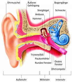 Das Mittelohr ist durch das Trommelfell luftdicht nach außen abgeschlossen. Damit der Schall problemlos auf das Innenohr übertragen werden kann, muss er möglichst ohne Verlust durch das Mittelohr übertragen werden. Hierzu dienen die Gehörknöchelchen, die in einem luftgefüllten Raum schwingen (siehe auch DiveInside Bericht "Das gemeine Taucherohr").