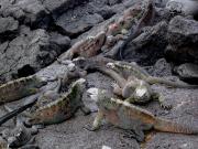 Eine andere Reptilienart, die nur auf Galapagos anzutreffen ist, ist der Meeresleguan. Auf der Insel Fernandina treffen wir auf Hundertschaften dieser Tiere, die Charles Darwin als "hässliche Wesen von schmutzigschwarzer Färbung, dumm und träge in ihren Bewegungen" beschrieb. Trotz des unvorteilhaften Äußeren üben diese Kreaturen eine große Faszination auf den Besucher aus.