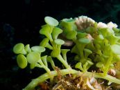 Womit die Tauchgebiete um d‘Andratx weniger punkten können ist farbiger Bewuchs und Wracks. Bunte Schwämme sind Mangelware, Gorgonien tief. Es dominieren Braunalgen in allen Variationen und riesige Seegraswiesen, die zusammen ungefähr so groß sein dürften wie die Prärien von Wyoming und Nebraska zusammen. Zwischen ihnen finden sich vereinzelt Bestände der "Killeralge" Caulerpa racemosa, die aus dem Roten Meer eingewandert ist. Hier ist sie aber ziemlich kleinwüchsig geblieben.