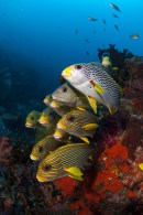 War man zuletzt in Großfischdestinationen unterwegs, kann es passieren, dass man anfangs enttäuscht ist, und auf den ersten Tauchgängen einige Highlights im Millimeterbereich übersieht. Ein Umstand, der sich schon nach wenigen Tauchgängen ändert, wenn man mehr und mehr entdeckt, und die anfängliche Gelassenheit in schiere Begeisterung umschlägt. Und selbst, wenn man nicht alles sieht, so ist der Gesamteindruck einfach überwältigend. Bunt, bunter am buntesten: So könnte man die Riffe wohl am ehesten beschreiben. Viele nie zuvor gesehene Arten und vor allem die Menge an Jungfischen sind überwältigend. Es entsteht der Eindruck, die gesamte Unterwasserwelt hat ihre Kinderstube hierher nach Raja Ampat verlegt.