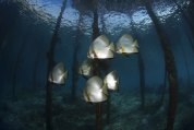 Dem so genannten Wobbegong oder "Teppichhai" können wir auf unseren Tauchgängen im Norden an beinahe jeder Ecke begegnen. Gerne wollen wir auch in den Mangroven einige Bilder von mit Korallen bewachsenen Wurzeln erhaschen, doch da sich hier auch immer wieder Salzwasserkrokodile herumtreiben, beschließen wir diesen Tauchgang zu unserer eigenen Sicherheit zu unterlassen. Ein großes "Saltie" ist mit Sicherheit gefährlicher als jeder Hai es jemals sein könnte.