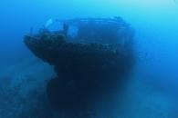 Die 1912 gebaute "Le Grec" kollidierte am 3. Dezember 1945 mit einer Seemine. Der falsche Name entstand, weil viele der nach dem Untergang geretteten Seeleute Griechen waren. So benannte man das Wrack eben nach ihnen. Ihr letzter Name war eigentlich “Schiffano“ und sie transportierte ein in Frankreich unverzichtbares Gut, nämlich Wein. Die Mine riss 20 Meter ihres Vorschiffes weg, was den verbleibenden 30 Metern Rumpf ihrer in 47 Metern ruhenden Anmut aber kaum einen Abbruch tut. Die alkoholische Ladung sucht man heute vergeblich. Die Fässer sind längst verfault und die Wrackbewohner hatten wohl einige feuchtfröhliche Partys.