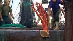 Fischer holen ein Stück einer zerstörten Koralle aus der Tiefsee (Foto: greenpeace)