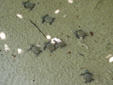 Die Schildkröten schlüpfen aus Eiern, die von den Muttertieren in Sandgruben abgelegt werden, und graben sich meist am späten Nachmittag oder in der Nacht aus, um ins Meer zu krabbeln. An Tagen mit vergleichsweise kühlen Temperaturen ist es Gästen daher möglich, dieses Schauspiel auch tagsüber zu sehen. Da die Schildkröten ihre Eier vorzugsweise auf unbewohnten Inseln oder ruhig gelegenen Stränden ablegen, wird das Schlüpfen als großer Erfolg des Resort-Konzepts gesehen, das besonderen Wert auf den Schutz der Natur legt.