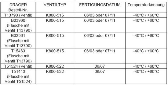 Firma Dräger festgestellt, dass in einigen wenigen der Druckgasbehälter